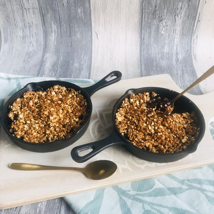 Al een tijdje speelde ik met het idee om een appelcrumble te maken in mijn mooie pannetjes. Maar nu dat het zonnetje zo schijnt, heb ik niet zo’n zin in appels. Een appel is dan ook meer herfst/winter fruit. Blauwe bessen daarentegen groeien in de lente/zomer.