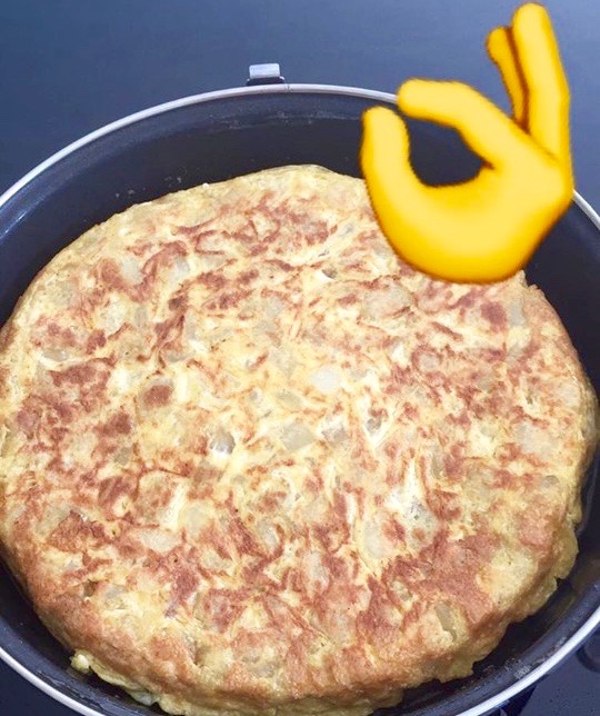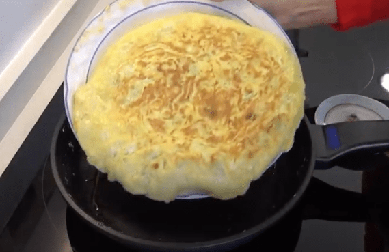 * De tortilla is klaar als je ei helemaal gestold is.
