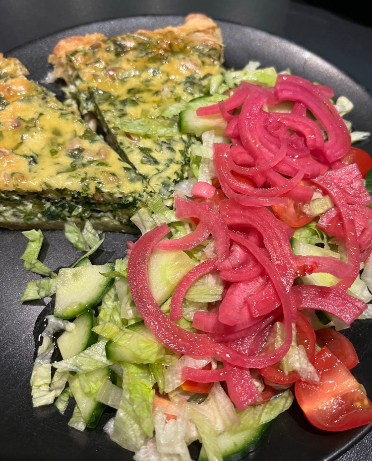 Voeg een beetje van de gepekelde ui toe aan je salade. Of op je toast met hummus of avocado.