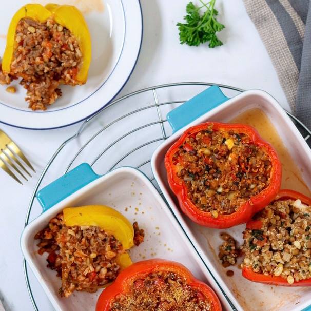 Gevulde paprika is een easy en complete maaltijd. Je kan eindeloos variëren.