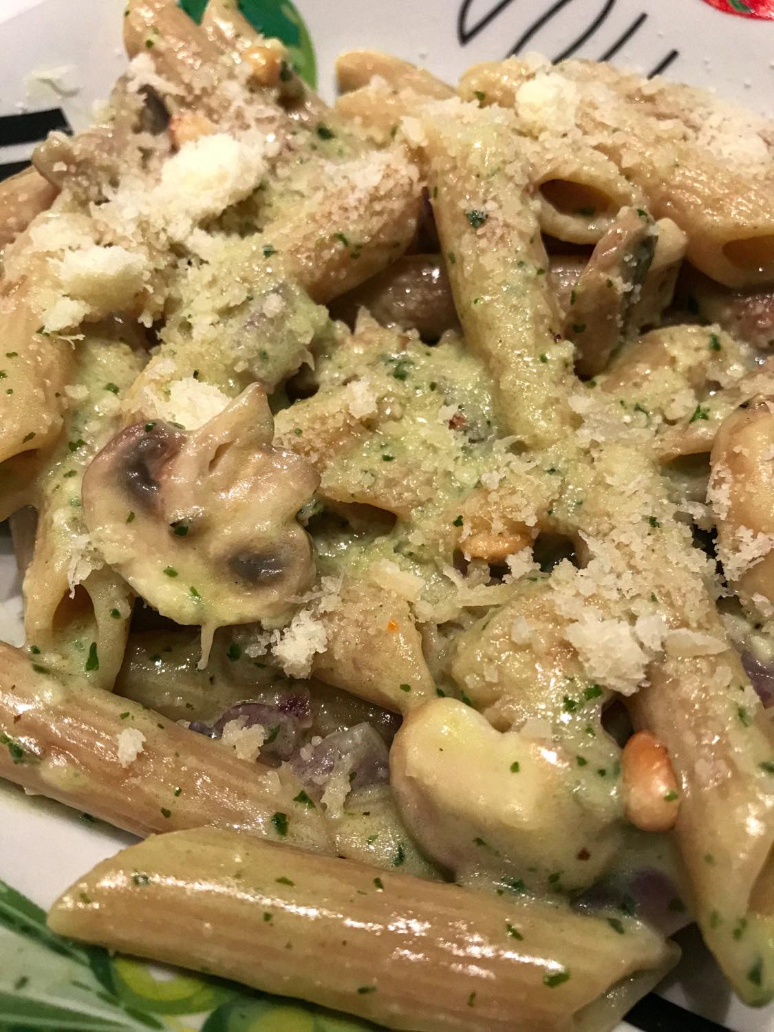 Ik kies trouwens 90% van de tijd voor volkoren pasta. Dat bevat meer vezels, vitamines en mineralen dan witte pasta. Helaas vind je nog niet alle soorten in een volkoren versie.