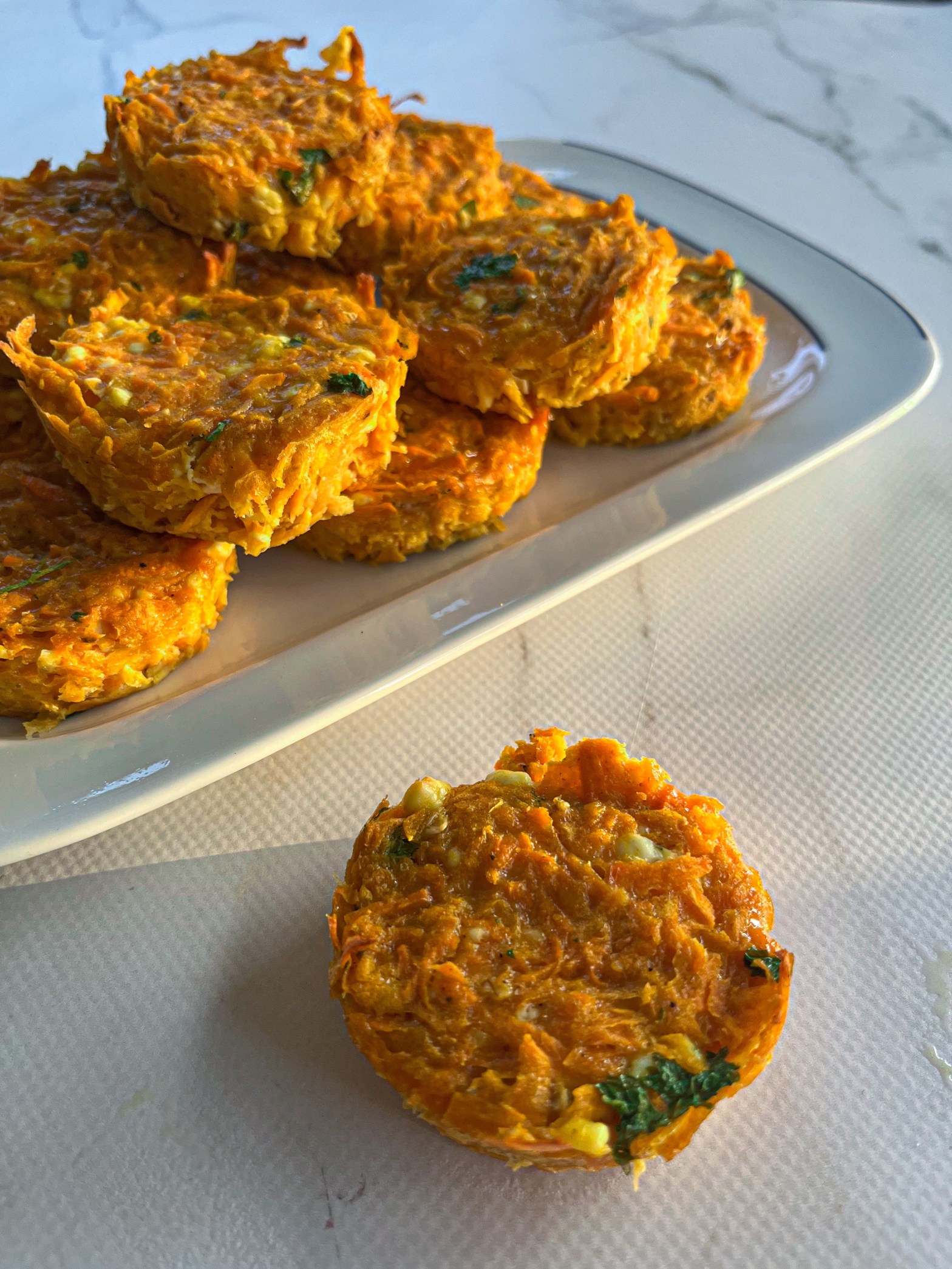 Ik ben eigenlijk heel zot van groenten- of aardappelkoekjes. Het is eens een ander soort tussendoortje. Want eerlijk, ik ben meer van de hartige tussendoortjes.